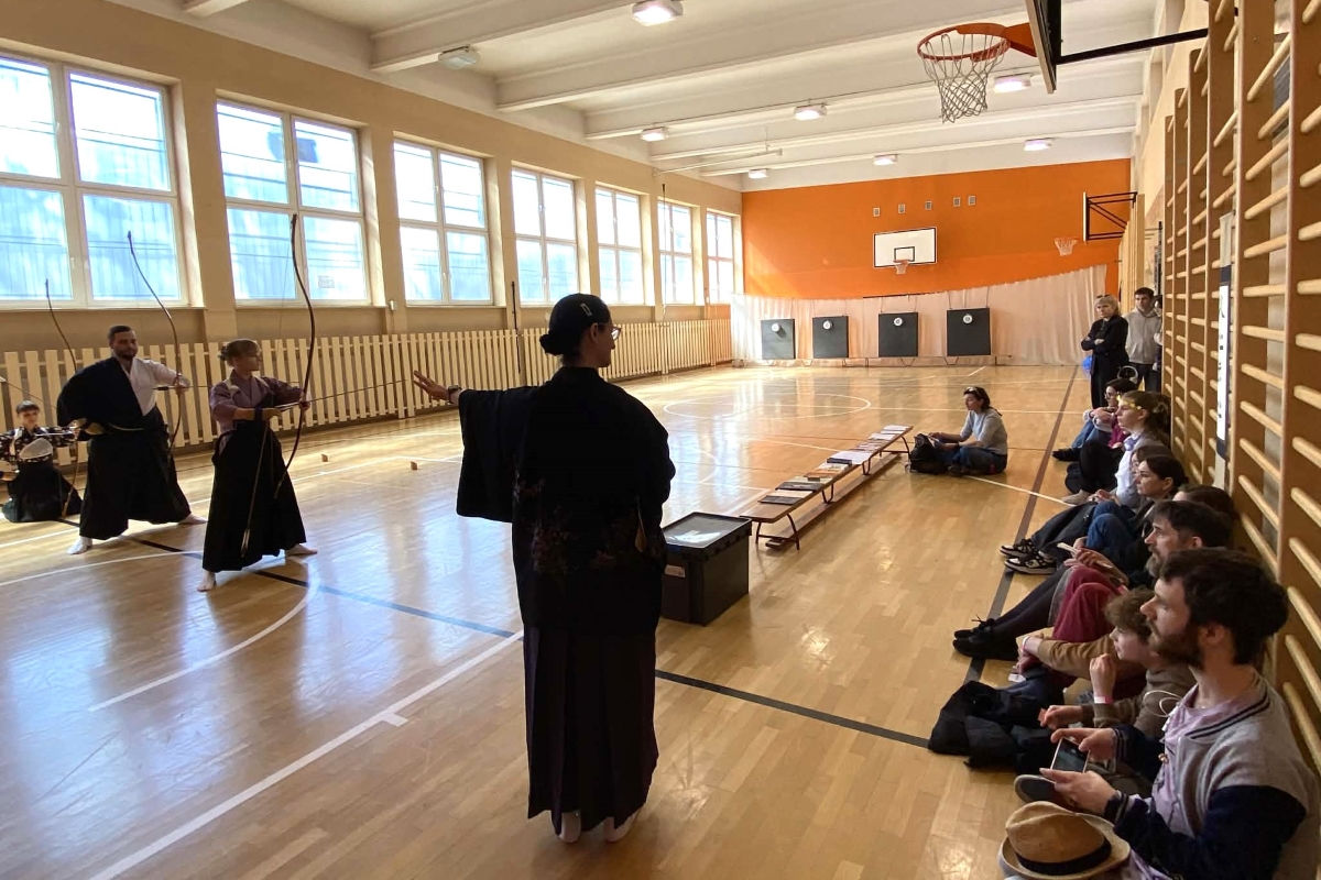 18 kwietnia 2026 odbyła się kolejna, XIV już edycja Dnia kultury Japońskiej w gmachu II Liceum Ogólnokształcącego im. Gabriela Narutowicza w Łodzi. W programie całodniowej imprezy znalazły się m.in. warsztaty kaligrafii i origami, pokaz tańca z Okinawy, prelekcje nt. kultury Japonii, pokaz i warsztaty aikido oraz karate a także różnorakie konkursy. Jak co roku ekipa Ayame uczestniczyła w tym wydarzeniu, prezentując sztukę tradycyjnego łucznictwa japońskiego. Choć początek nie był łatwy, ze względu na dość wczesną porę jaką jest sobotnie przedpołudnie, ostatecznie zebrało się niemałe grono chętnych, chcących poznać tajniki sztuki łuczniczej.