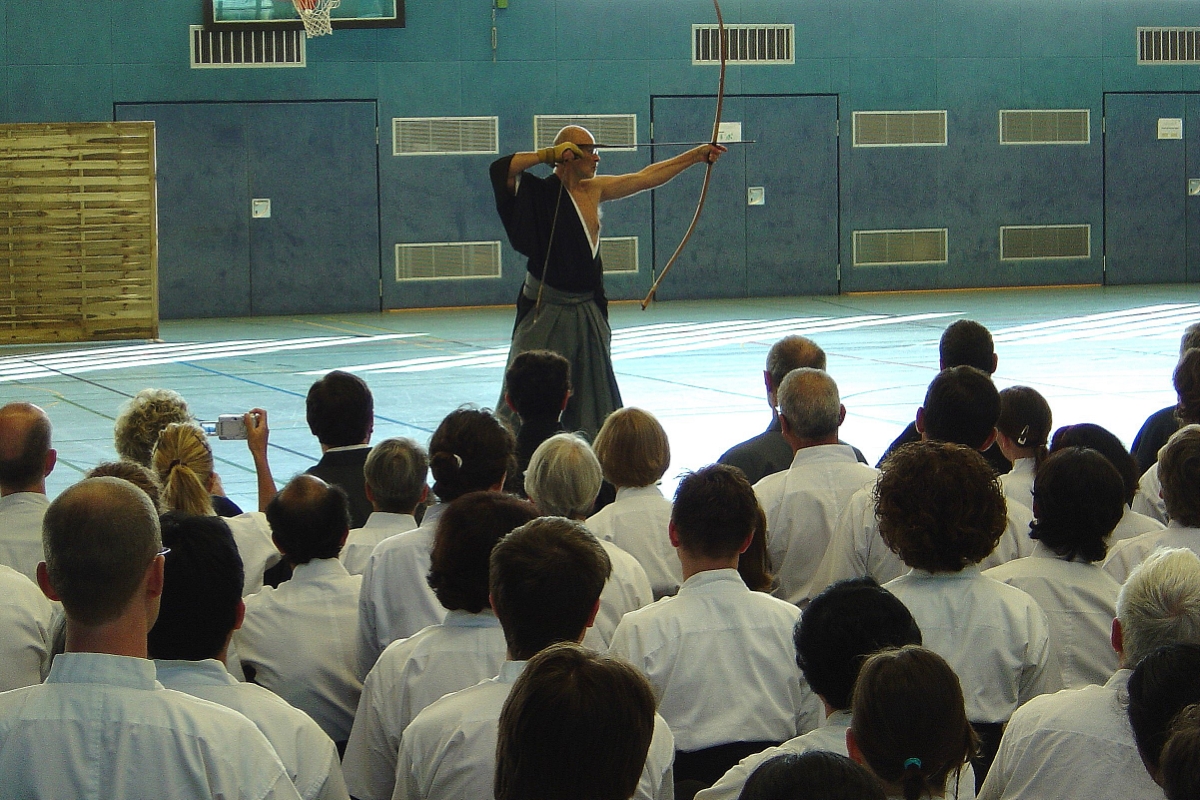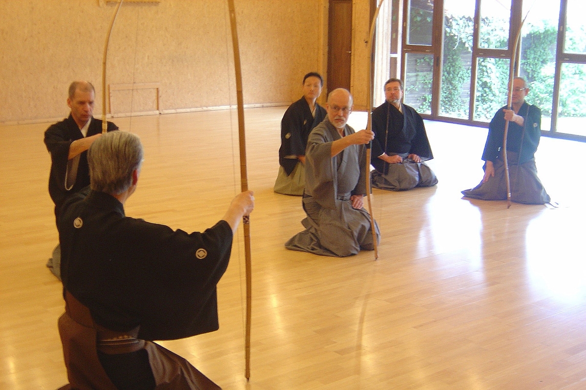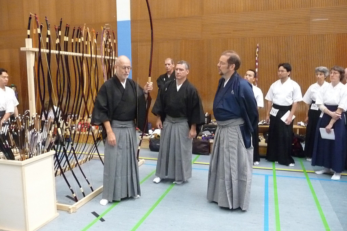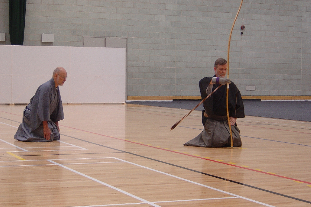 Po powrocie zacząłem rozglądać się za jakimiś możliwościami dalszego szkolenia w Europie. Jakimś cudem znalazłem informację o europejskim seminarium i egzaminach w Anglii. Napisałem maila do UKKA, na którego odpowiedział Liam O’Brien. No i kroczek po kroczku znalazłem się latem w Loughborough i zdobyłem swój pierwszy kyudowy dan (to oczywiście telegraficzny skrót, w rzeczywistości załatwianie trwało kilka miesięcy 😉 ). No i tam po raz pierwszy miałem okazję zobaczyć Senseia Hoffa.